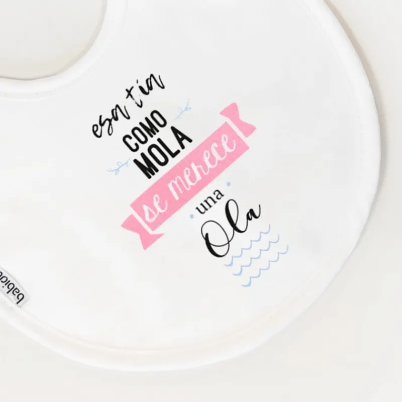 Babero redondo estampado frase graciosa.COMPOSICIÓN: 100% ALGODÓNCUIDADOS: Lavar a maquina – agua fria (30 max). PRES…