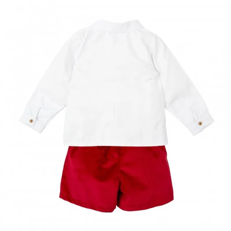 Conjunto de bebé niño de camisa y short en terciopelo, confeccionado para ofrecer suavidad y elegancia. Ideal para cualquier evento especial, asegurando que tu pequeño luzca adorable y se sienta cómodo.