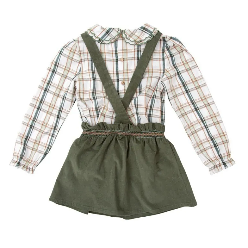 Conjunto de bebé niña de blusa de cuadros y falda con tirantes