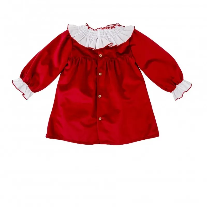 Vestido de bebé niña en terciopelo con cuello a contraste, diseñado para ofrecer elegancia y comodidad. Perfecto para ocasiones especiales, manteniendo a tu pequeña adorable y confortable.